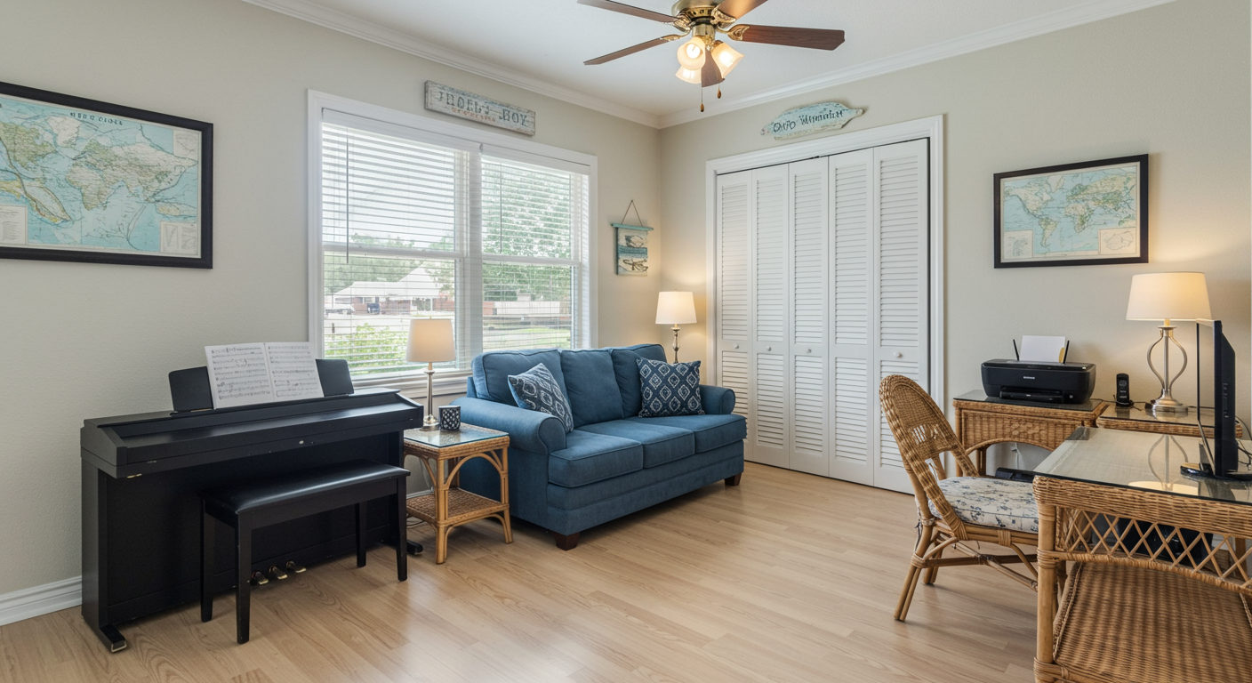 Beyond the focal point of a piano in the main living space, take it even further with a home studio for the complete musical experience. Deck out the room with a full band set, recording equipment, soundproofing, and your favorite memorabilia and collectibles for a quick jam session or a professional setting for laying down tracks in a fun and immersive, at-home retreat.