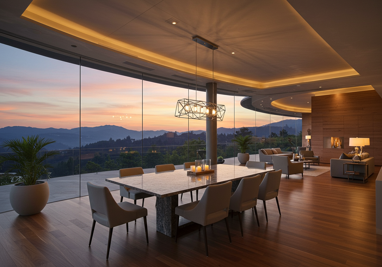 From the striking floor-to-ceiling windows to multiple decks, this elegant three-bedroom, the two-and-a-half-bath residence was designed to take full advantage of the spectacular mountain views. Vaulted ceilings and stunning wood floors frame the open floor plan, which includes an array of custom built-ins and exquisite finishes. The gourmet kitchen is a chef’s dream, with ample space to host family gatherings, while the peaceful master suite offers a relaxing retreat. The five-car garage offers plenty of storage for the auto aficionado.